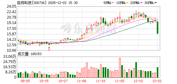 百邦科技今日跌停,全天换手率13.20%,成交额2.74亿元,振幅22.58%。龙虎榜数据显示,机构净买入61.25万元,营业部席位合计净卖出1645.44万元。