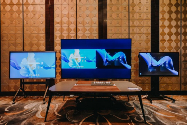在智慧会议场景中,三星115英寸QHFX智能数字标牌与WAF系列电子白板共同构建了新一代会议协作体验。QHFX以惊人尺寸与34.1mm厚度的纤薄外形营造出强烈的视觉冲击。其支持横、竖两种安装模式,适配不同内容呈现需求,纵向安装时可展示真人大小的产品模型或竖版文档,增强了信息传达效果。防眩光面板有效抑制环境光反射,使屏幕内容在明亮会议室中仍保持清晰可视,坚固的结构设计与全天候运行能力则满足了企业高强度使用的需求,释放更多运营潜力。三星WAF系列电子白板则进一步提升了会议交互效率,其屏幕分辨率为3840 x 2160,辅以400nit 亮度与防眩光设计,确保观看内容清晰且舒适。该产品搭载安卓14操作系统,搭配八核CPU与8GB+64GB存储组合,可流畅运行多任务处理,设备支持40点触控技术,能够实现多人同时批注,满足小组讨论创意构思时所必备的实时书写需求。