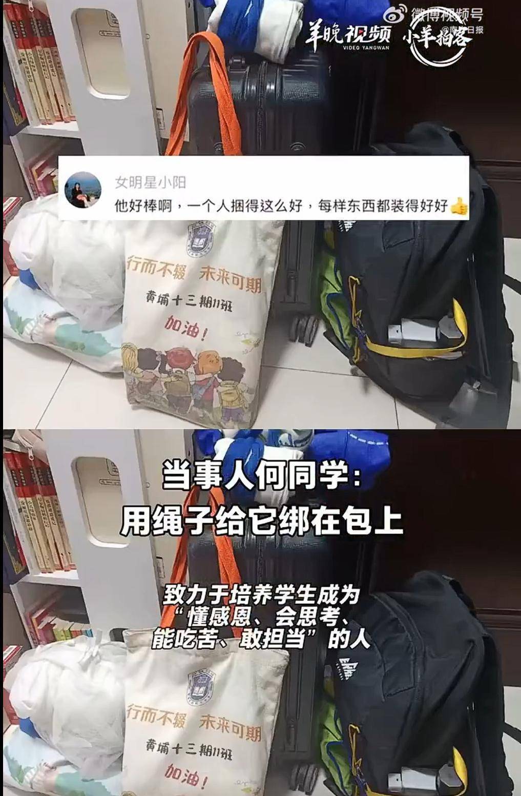 但所谓成长,本就不能一直躲在无忧无虑的温室里,而是要自己走向有风有雨的前路。少年背上的不只是行李,而是一份可贵的独立和担当,这种自己动手、解决问题的意识,才是最让人感到欣慰的。这些年轻挺拔、不怕负重的身影,也让我们看到,被给予信任、被赋予责任的孩子,能迸发出多么积极向上的成长力量,这也是生活教育最为扎实的注脚。