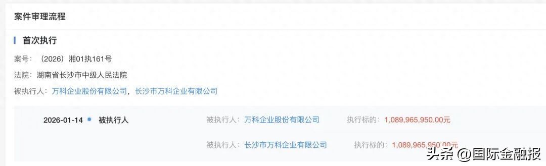 1月19日专业股票配资门户,根据天眼查信息,万科企业股份有限公司(下称“万科企业”)于近期新增一则被执行信息。其与长沙市万科企业有限公司一同于1月14日被立案执行,执行标的约10.9亿元。