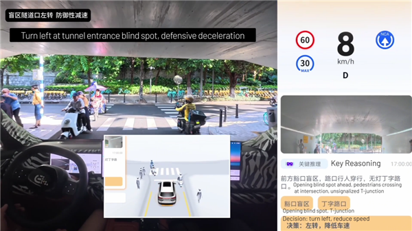 而VLA模型可帮助驾驶员在大车遮挡、弯道盲区、复杂交汇口等高风险场景中进行预判应对。